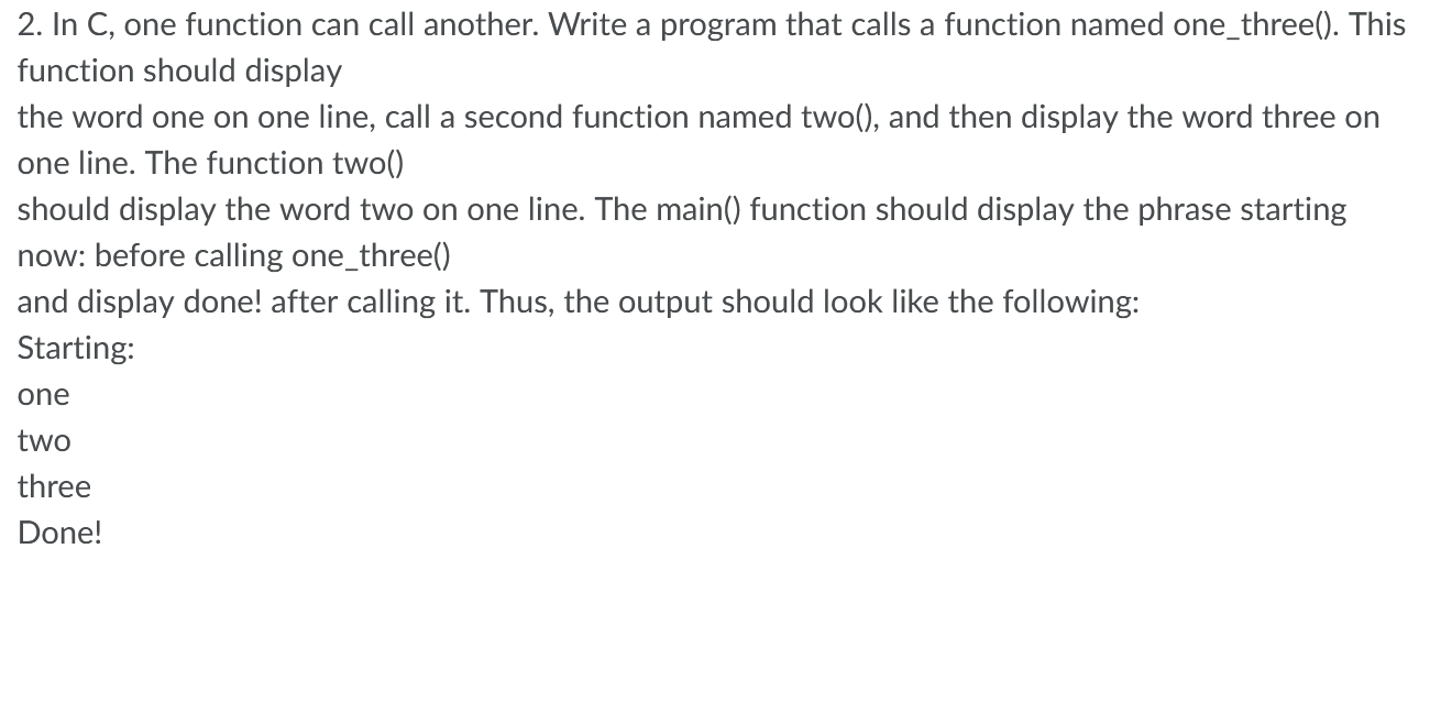 Solved 2 In C One Function Can Call Another Write A Chegg Com